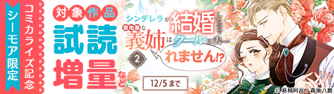 - 『シンデレラが結婚したので意地悪な義姉はクールに去……れません!? 2』コミカライズ配信開始!シーモア限定で原作ノベルキャンペーンを実施中!